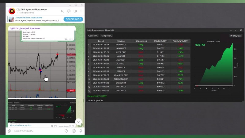 Impulse Detector Pro делает именно это: алгоритм непрерывно анализирует рынок и в реальном времени подсвечивает моменты, когда в сделку ещё не поздно зайти.
