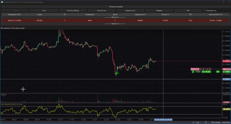 делает именно это: алгоритм непрерывно анализирует рынок и в реальном времени подсвечивает моменты, когда в сделку ещё не поздно зайти.