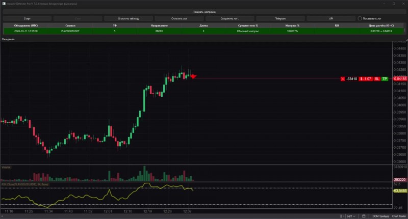 Impulse Detector Pro делает именно это: алгоритм непрерывно анализирует рынок и в реальном времени подсвечивает моменты, когда в сделку ещё не поздно зайти.
