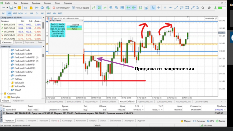 Автоматический индикатор LevelHunter занимается именно этим: анализирует динамику активности торгов и накладывает эти данные на график. И когда бы вы ни открыли график — вы видите моменты для открытия прибыльных сделок здесь и сейчас!
