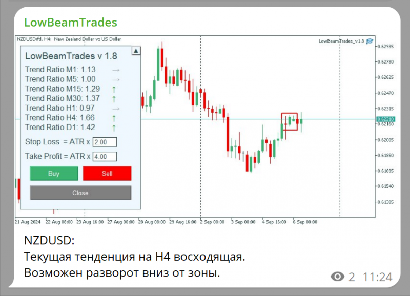 → Как только советник находит потенциальные точки разворота, он немедленно уведомляет вас об этом в Telegram: