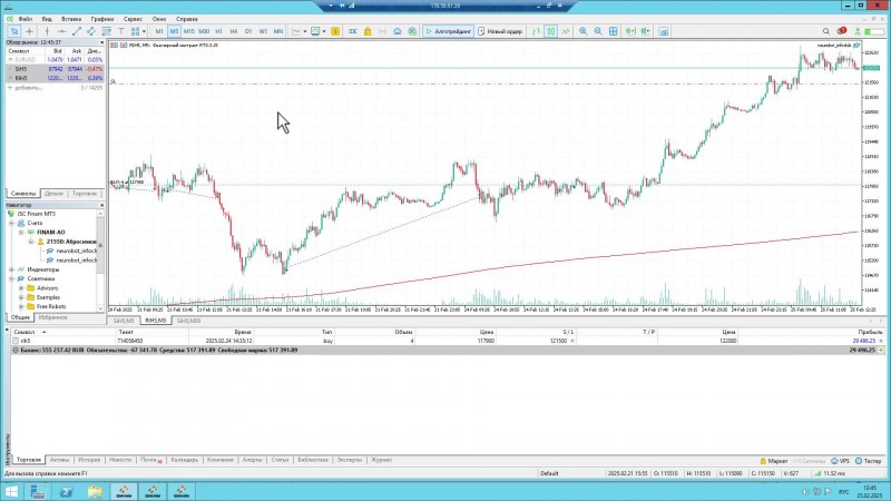 В видео и в эфире я показывал, что на счете стоит портфель из двух роботов: на Si и на RTS. Оба робота работают только на покупку. Когда Si падает, RTS растет.