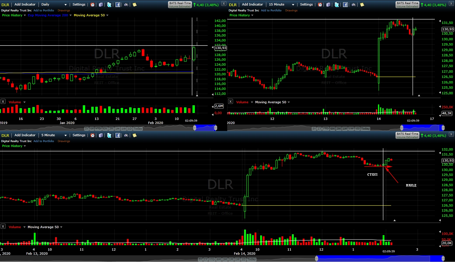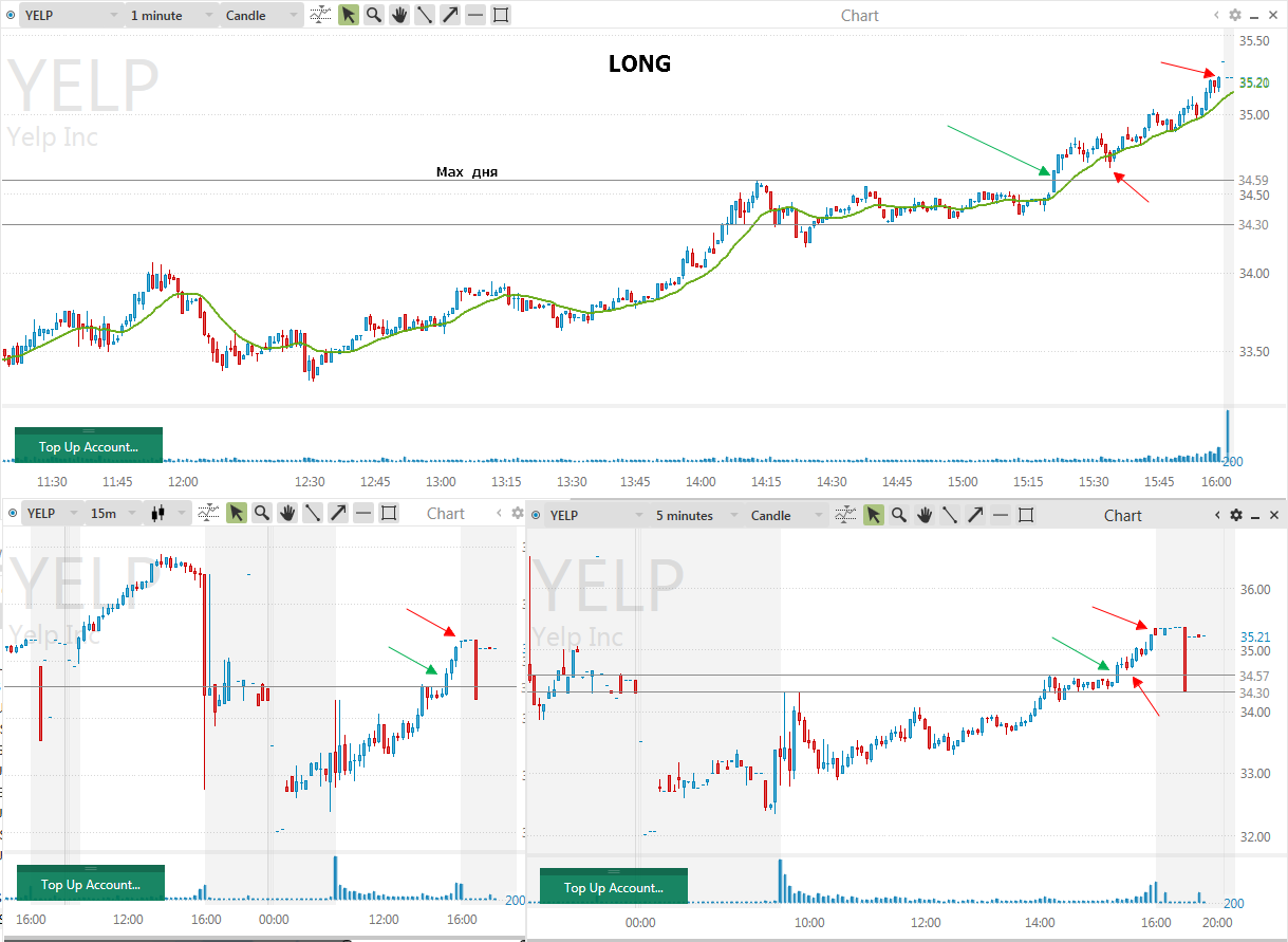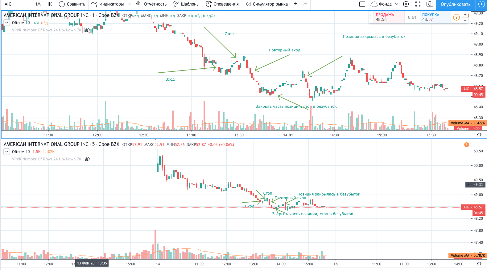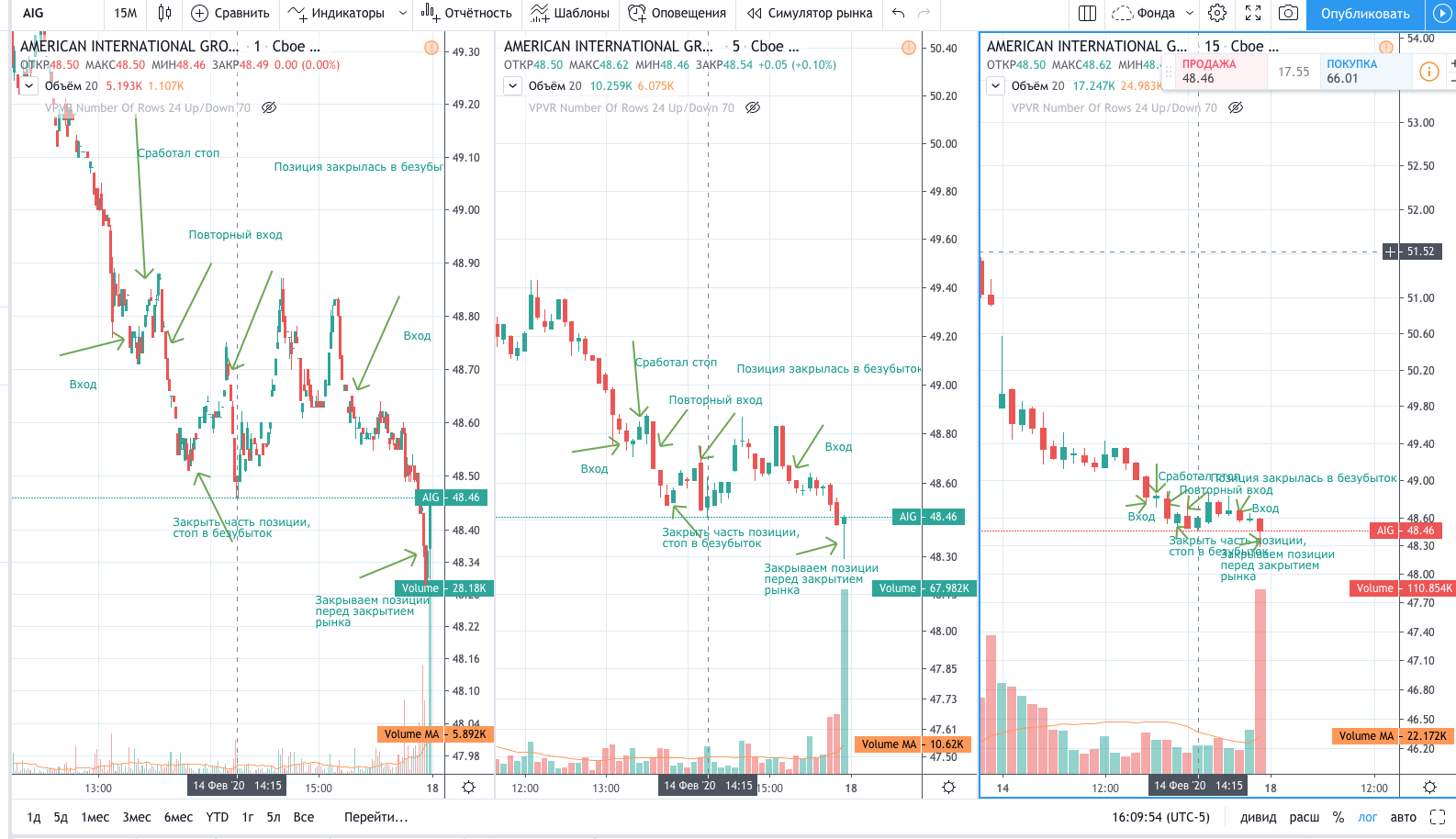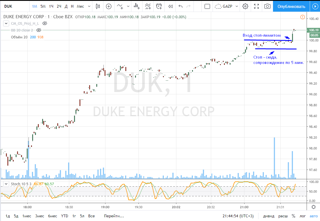 Вход на максимуме дня + объем и выход по стопу на 5 минутках