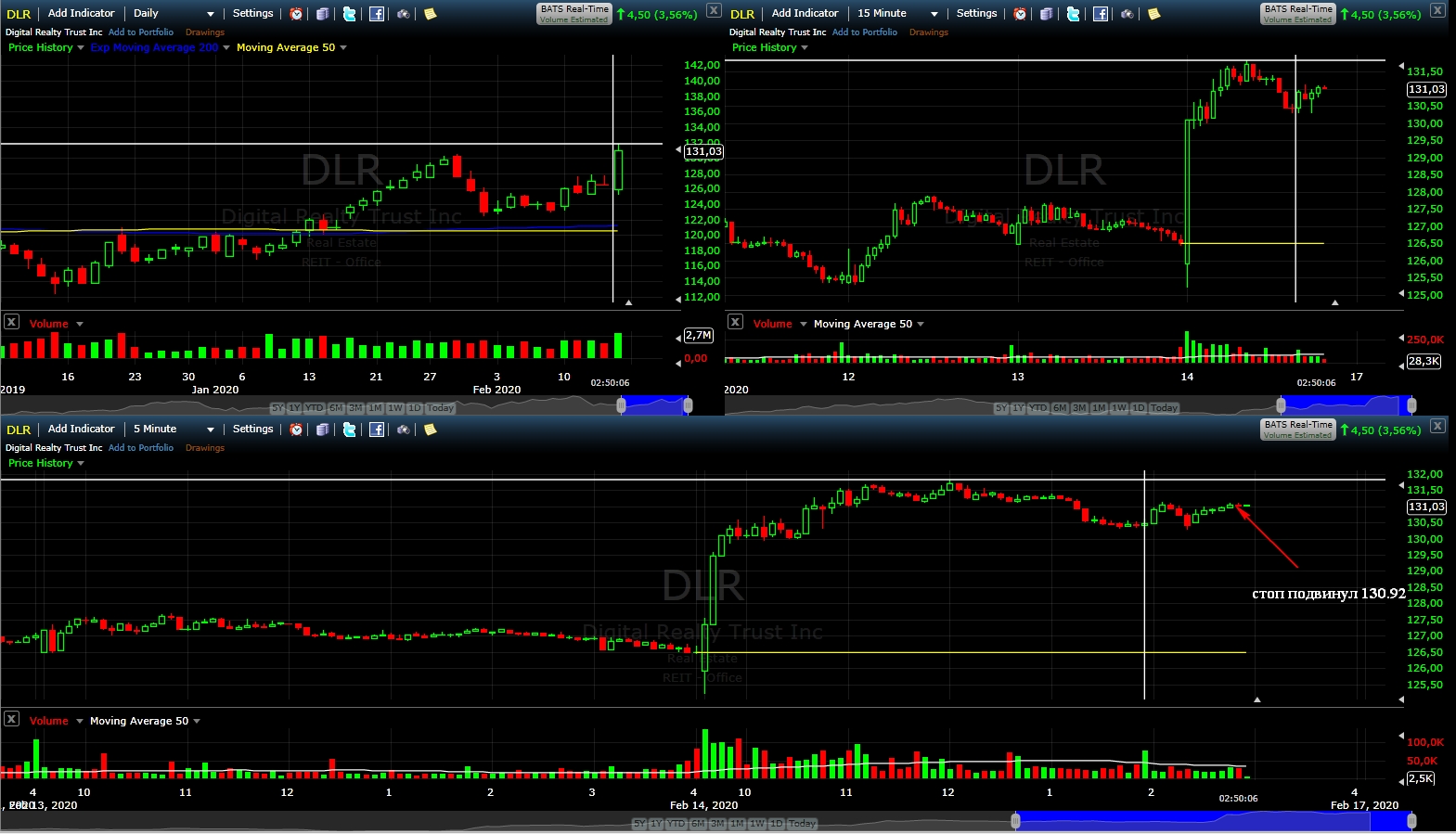 подвинул стоп под 130.92   даже ели вынесут сейчас 0.3$ прибыли по одной акции вполне хватит)  и того за сегодня 2 сделки и обе с профитом суммарно почти 0.8$ !!!