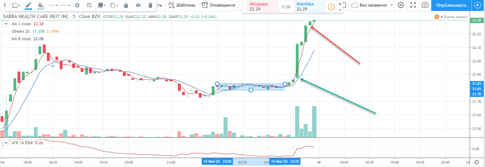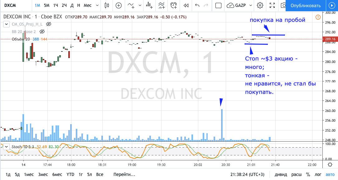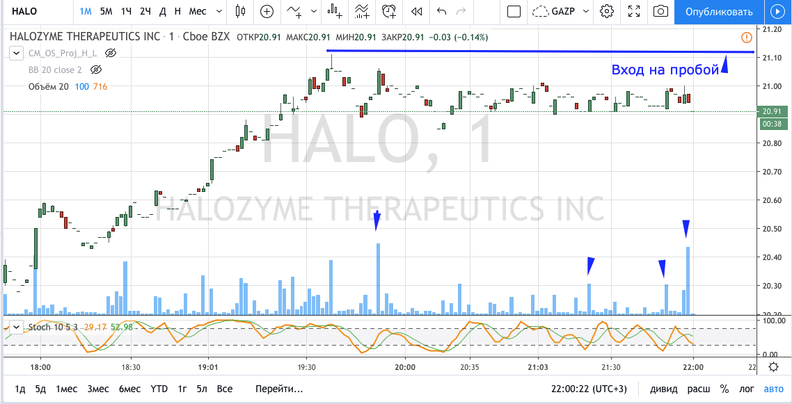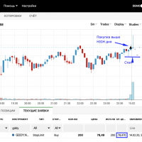доб вечер! со скриншотом не разобралась пока. с помощью скринера на финвизе нашла 20 акций. из них больше всех выросла AAWW.по графику видно что цена акции гэпом выросла на открытии рынка. около 21 часа мск 13 ньюйорка цена была в определенном коридоре.можно было поставить отложенный ордер на покупку. на 1-2 цента выше с надеждой что цена вырастет. крупный обьем уже прошел немного раньше этого времени. после того как цена стала расти нужно было выставить стоп лос на 5 мин графике внизу япоской свечи и передвигать его по мере повышения цены