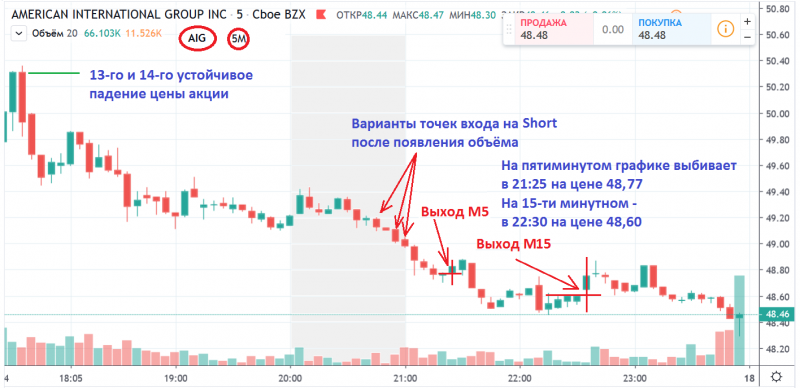 Акция AEM продажа ТМ1 продолжение тренда в шорт!