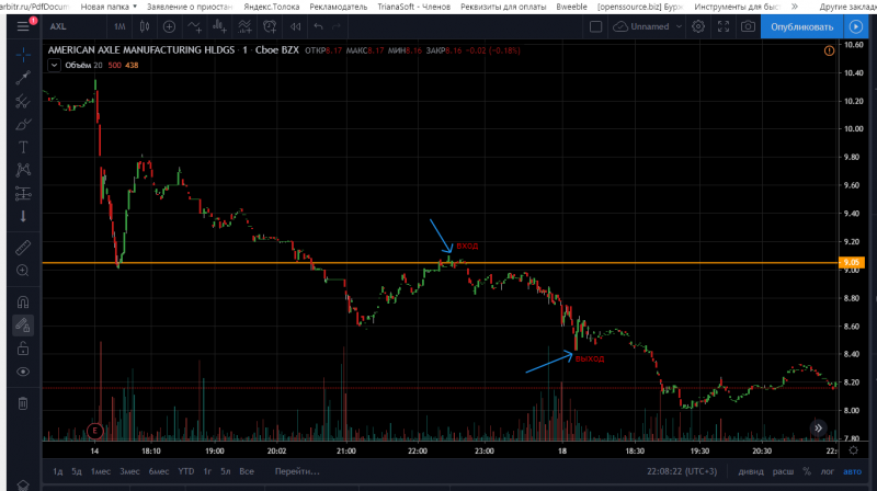 Акция AXL вход на продолжение тренда вниз шорт на ТМ1 от уровня.!