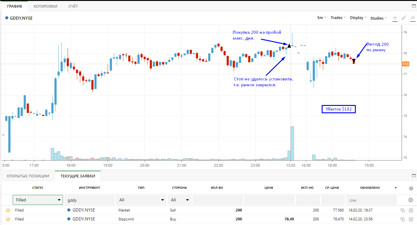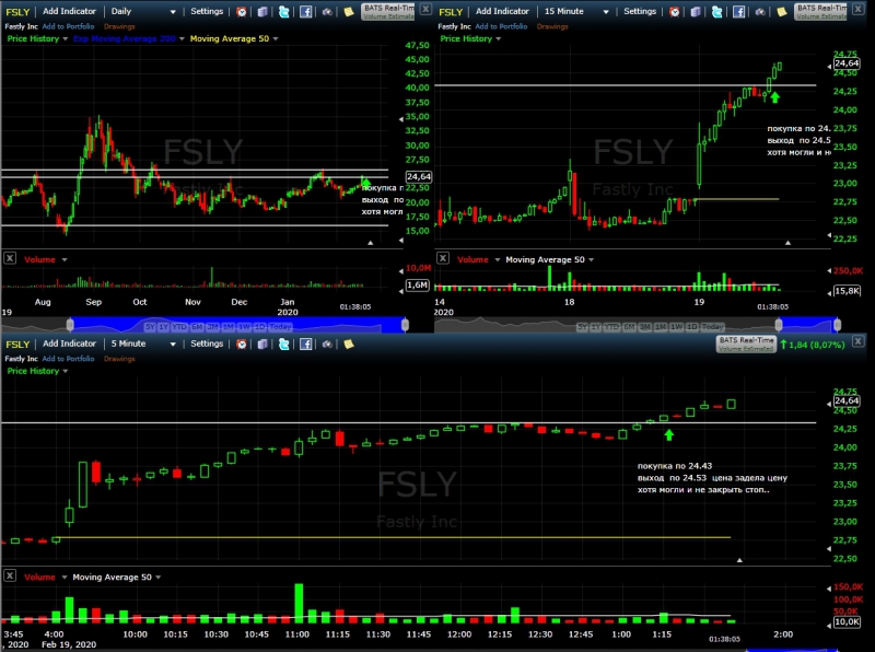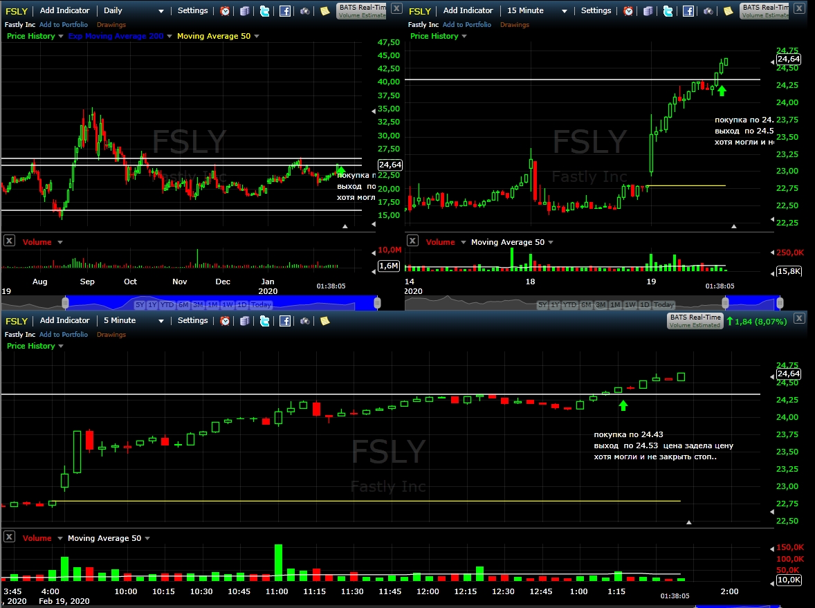 по FSLY заработал 0.1$ хотя могли и не исполнить, и все-таки что ордела брать с запасом +-1 п.п от хая или лоу тогда шансов больше что не вынесут стоп как в моем случае..