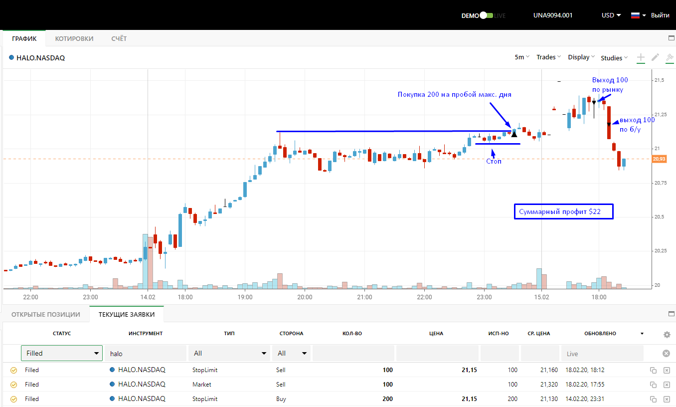 обьем прошел выставил отложенный ордер на покупку выше хая