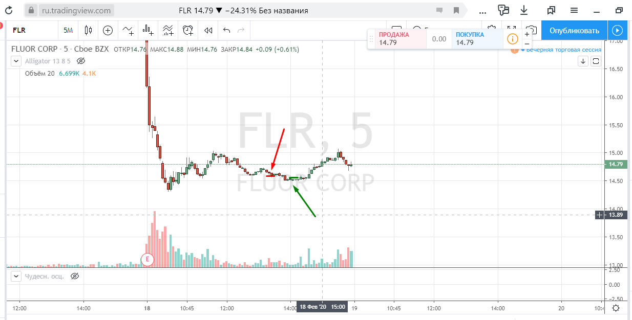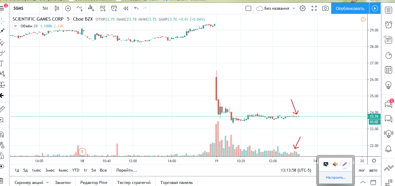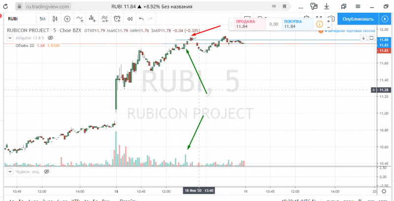 Покупка 13.55 и вопрос насколько объем должен быть выше среднего чтобы счетать
