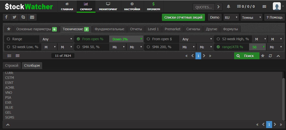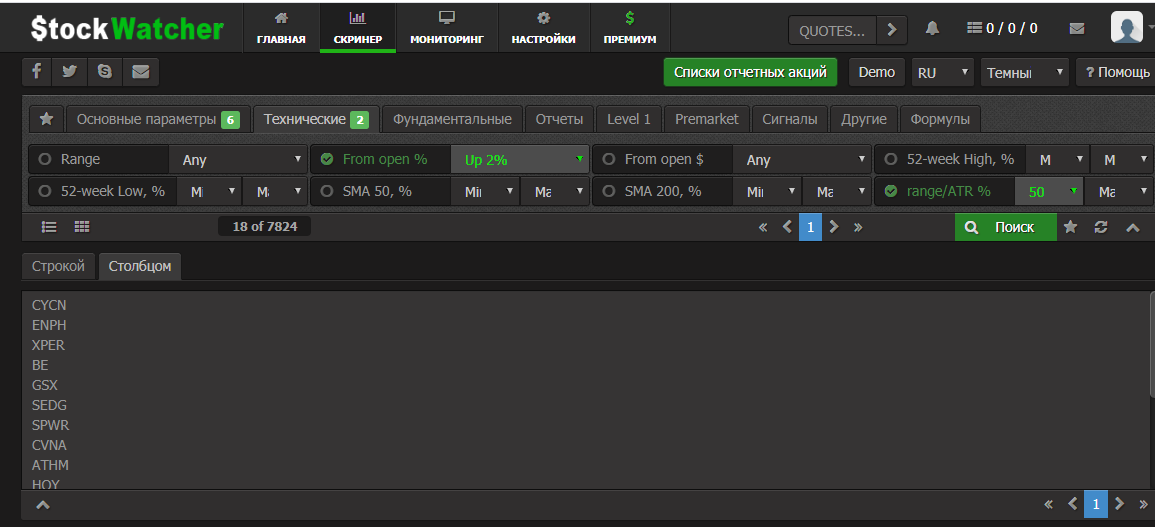 На FINVIZ отобраны след акции: