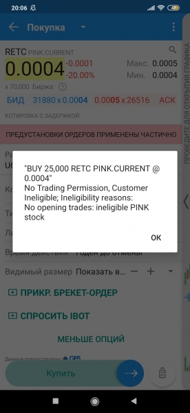 В связи с новым правилом SEC компании без публичной финансовой отчетности снимаются с публичных торгов. Вы как раз такую компанию пытаетесь купить, брокер не дает Вам это сделать.