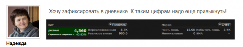 Надежда присоединилась к команде Павла Крёза в июле 2020 года. Как и многие участники Закрытого сообщества инвесторов, Надежда пробила заветную планку в феврале 2021 года, во время ралли. Тогда она написала: