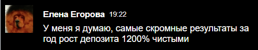 Мы от всей души желаем Елене еще меньше скромничать 😀: красивых сделок, удовлетворения от трейдинга и бурного роста депозита! 💣 Желаем взорвать рынок ОТС и в рекордные сроки увеличить депо в 100, 1000, 1'000'000 и более раз!