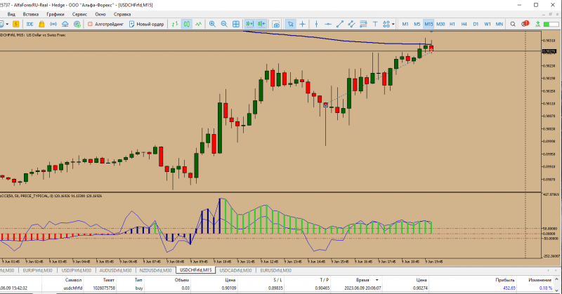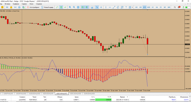 Сделка по франку. Вход- в зоне принятия решения.Сделка в плюс.Счет реальный.