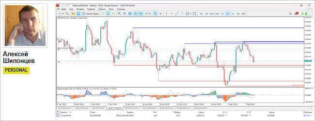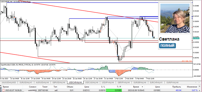 «Привет. Вчера встала в сделку USDCHF по ТС на Н4. Расчет на стоп 497п, цель 618п