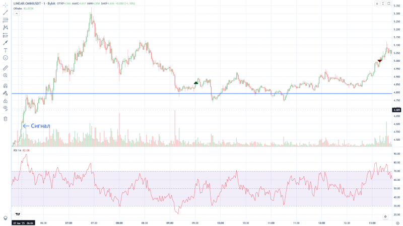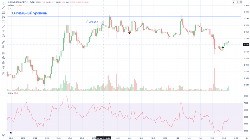 Через терминал Атас можно отслеживать цену и RSI.