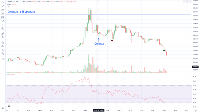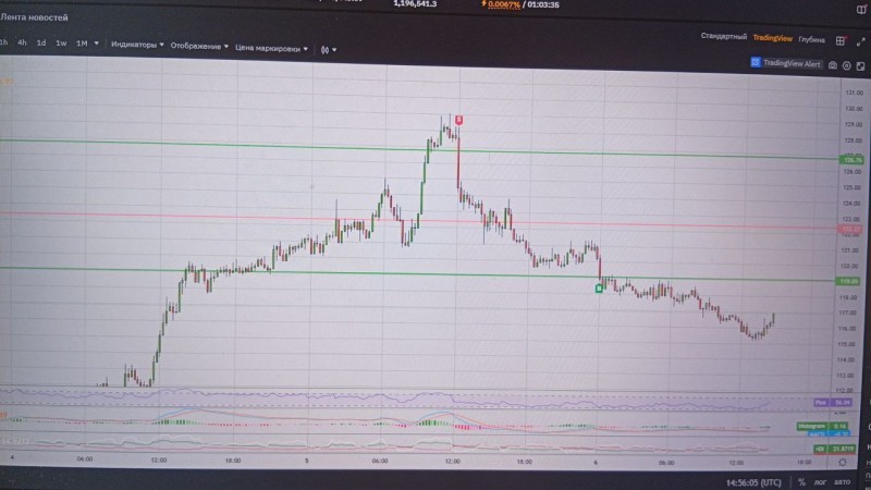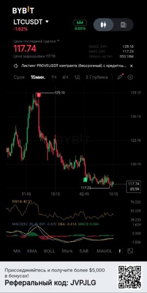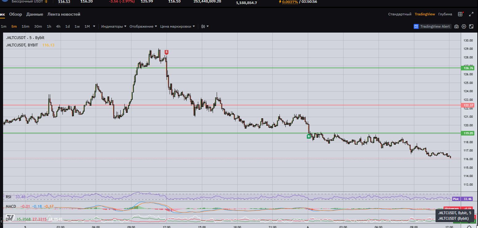 Здравствуйте! Моя первая сделка на реальном счёте по сигналу LCTUSDT от 05.08.2925  Quantumbot "сопротивление".  Уровень 122,37  не получилось взять, было очень рано.