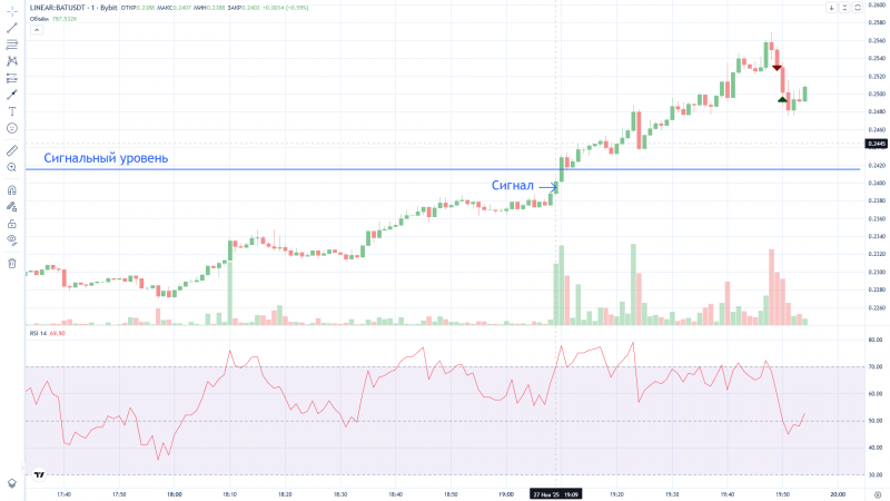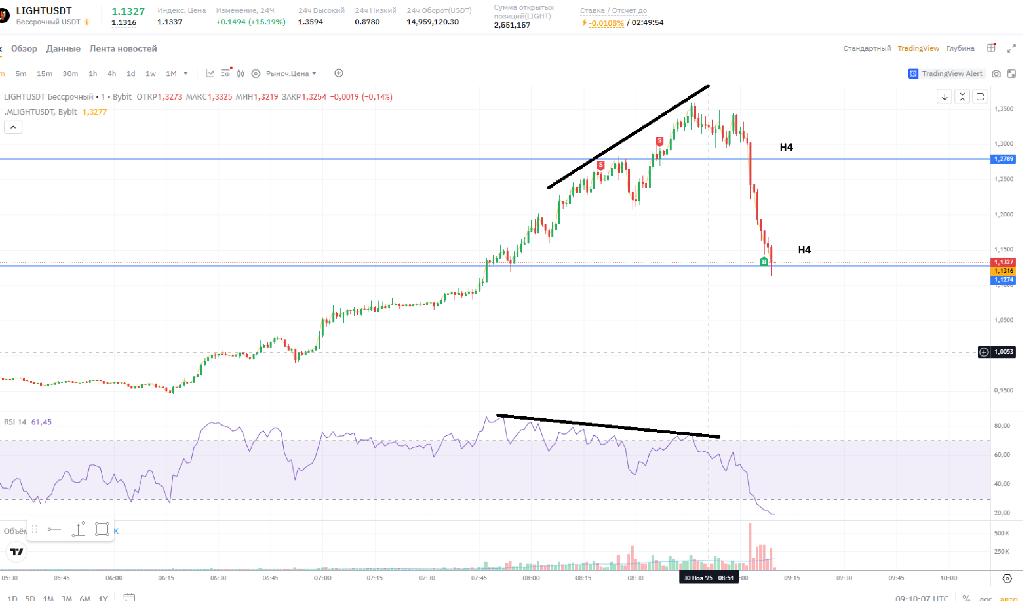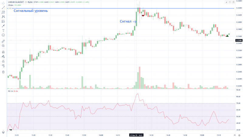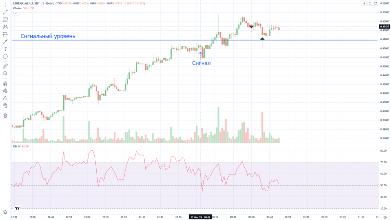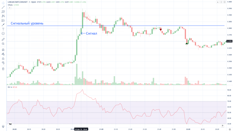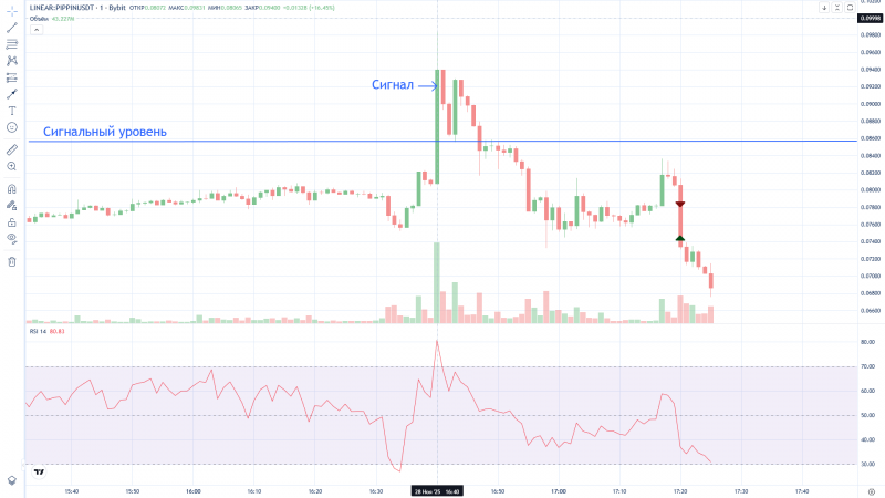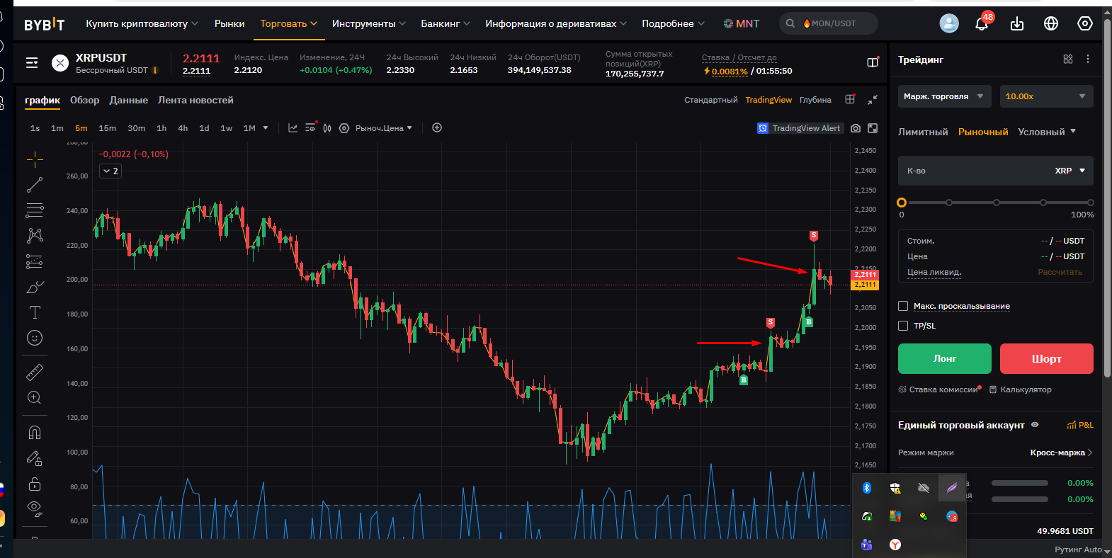 Странно, Дневник трейдера "нарисовал" вход в сделку на 2 минуты раньше фактического входа (вошёл в 16:12, а на графике 16:10). На графике BYBIT сделка отражена верно.
