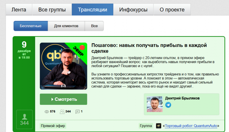 1 — Вы можете получить обратную связь на свою торговлю от Дмитрия — совершенно бесплатно.