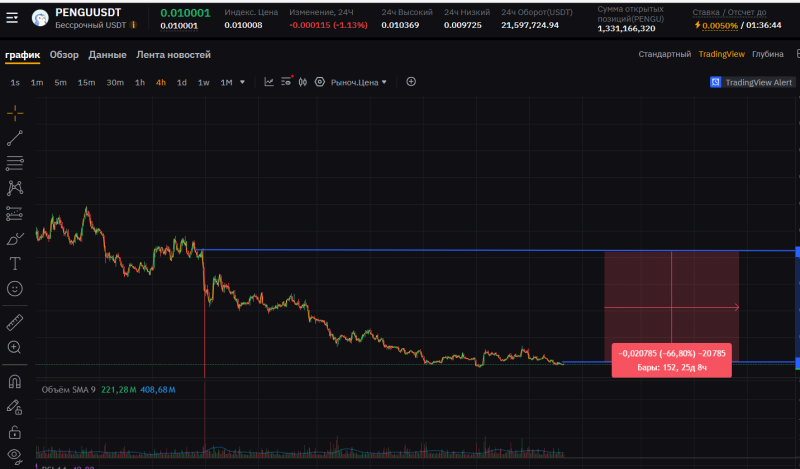 Ниже еще есть уровень через 22%. Ликвидность там сейчас нормальная. Общий тренд идет вниз, но небольшой откат взять можно.
