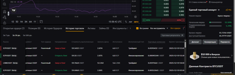 спустя 1 час 18 минутОткрыл историю нет открытых ордеров, а в балансе маржи и доступный баланс видно что объём занят сделкой как её найти может она случайно открылась?