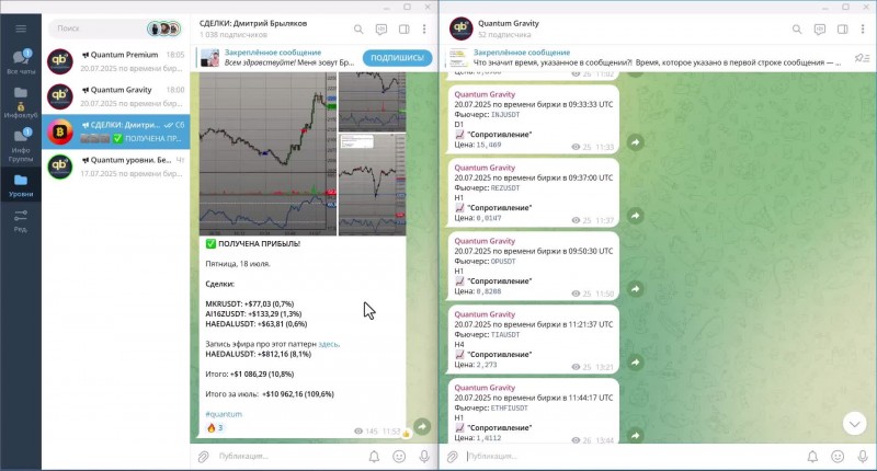 Система Quantum следит за всеми крипто фьючерсами (более 500!) и мгновенно оповещает, если на каком-то из них образуется новый ценовой уровень. В тот момент, пока он ещё не очевиден для всех.