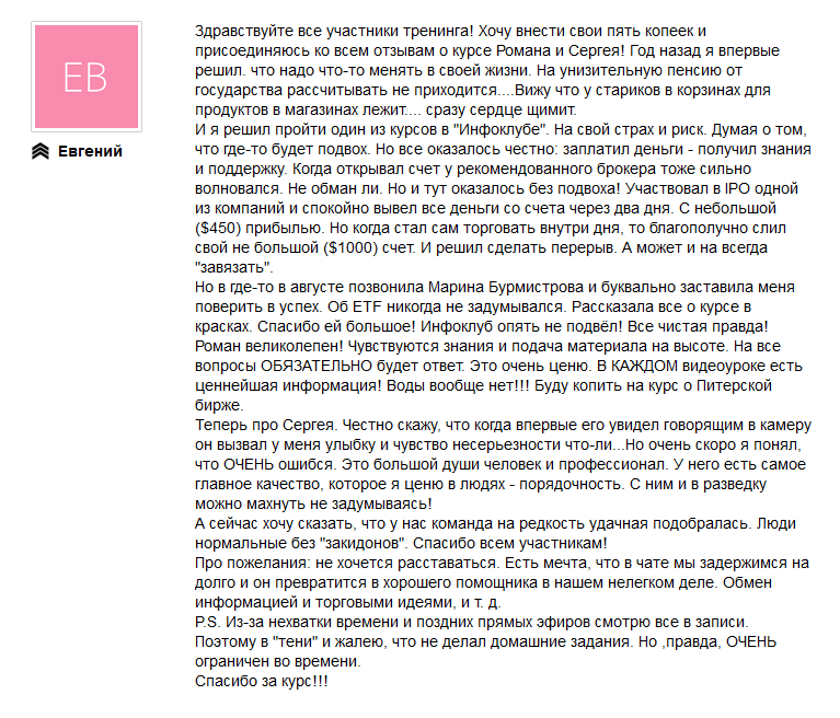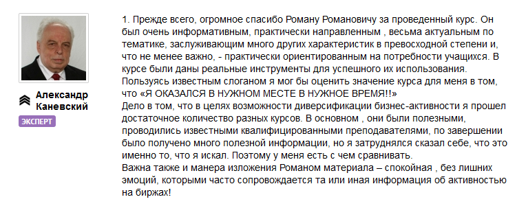 Возможно, Вы тоже проходили обучение у Романа Романовича и у Вас есть, что сказать по своему собственному опыту?