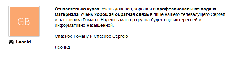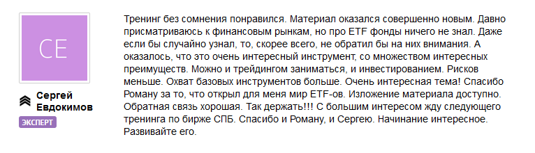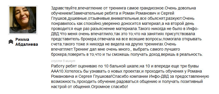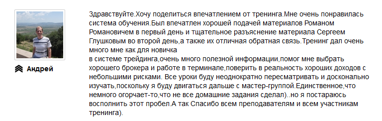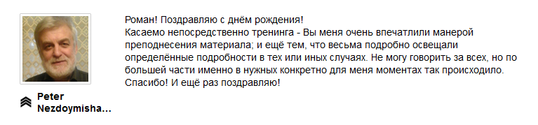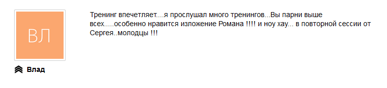 Его тренинги всегда получают наивысшие оценки от учеников. Ниже примеры отзывов, которые ученики оставляют после обучения у Романа.