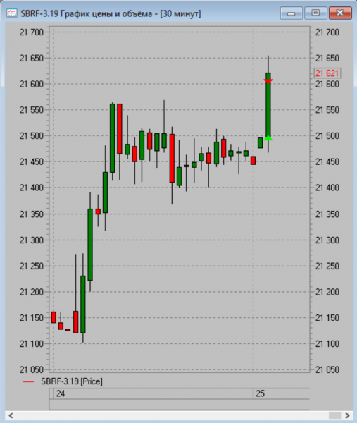 Также сейчас экспериментирую над нашим рынком (возможно, удастся к лету сделать хорошую систему с минимальным порогом входа), инструмент Сбербанк: