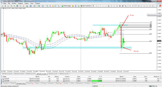 Ну, значит, пора и на реале... Входы на всех парах я пропускал, ждал на GBPUSD и EURUSD (там самый маленький спред). И дождался... Зашел, а цена прет. Я еще раз зашел. Одна сделка закрылась по тейку, а другую я закрыл руками (не выдержал). Сразу закрыл все и вышел на улицу. Ощущение непередаваемое... Потом решил Вам написать, чтобы отпустило меня... Спасибо Вам Огромное!!!!!»
