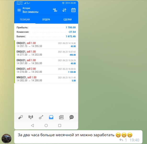 Здорово, что больше не нужно терять время в ожидании «того самого» паттерна или «той самой» ситуации, которая написана в торговом плане. А можно совершать 1-2 сделки в день и заниматься своими делами.