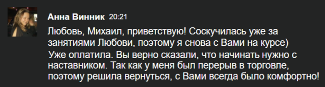 В приватном телеграмм-чате участники тренинга делятся своими результатами, текущими сделками и отлично общаются: