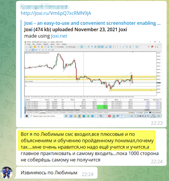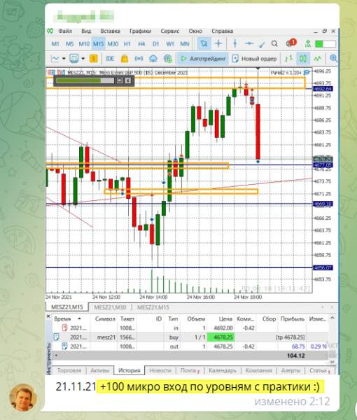 На практических занятиях с автором участники могли видеть, как Любовь входит в сделки и как проводит анализ графика. Те участники, которые вместе с автором входили в сделки, также заработали в этих позициях.