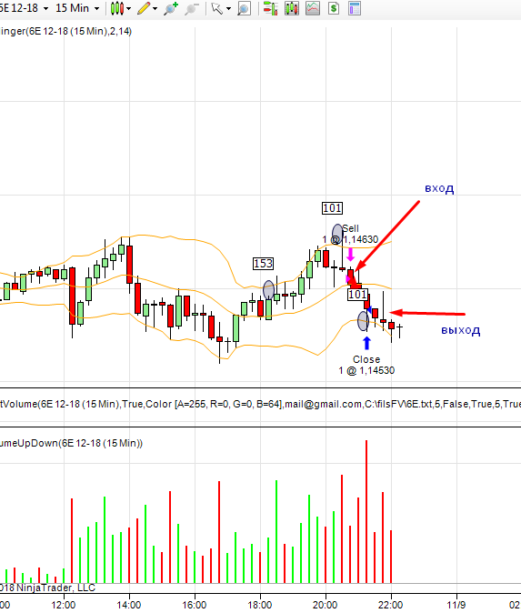 не получилось открыть скрин ; первая сделка -вход с подтверждением на третьей свечки,выход вблизи линии Bollinger
