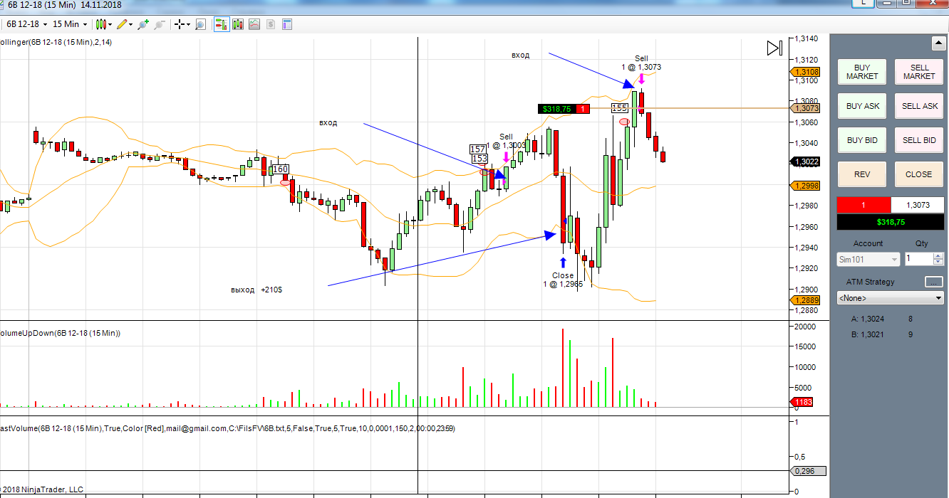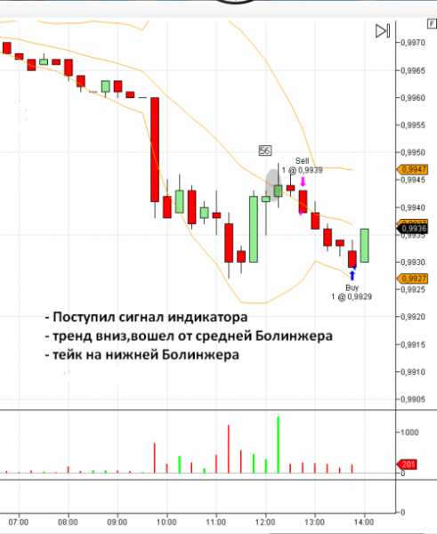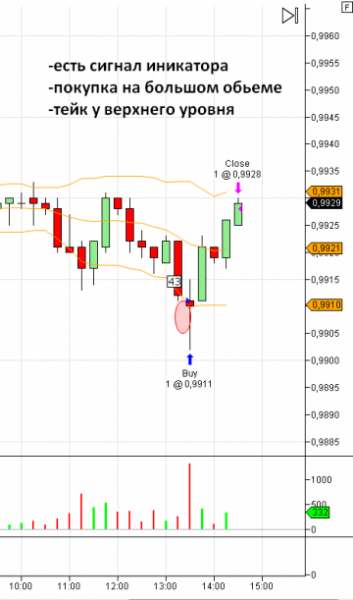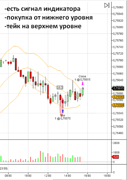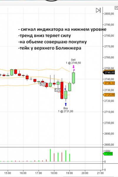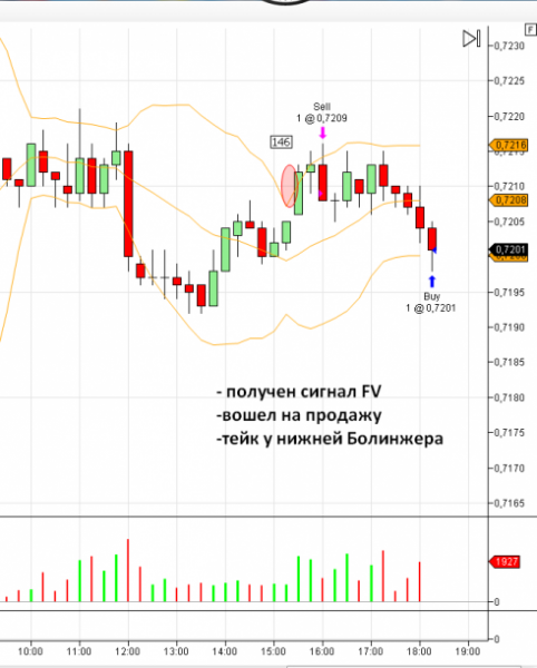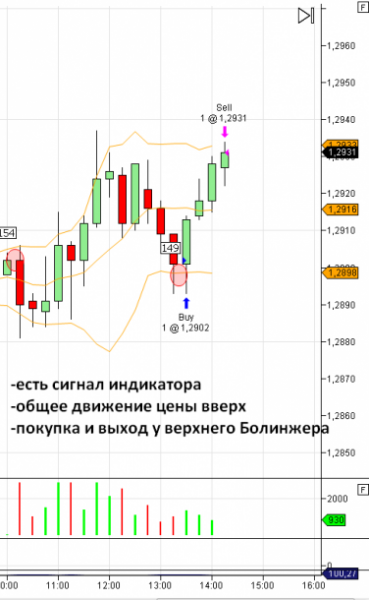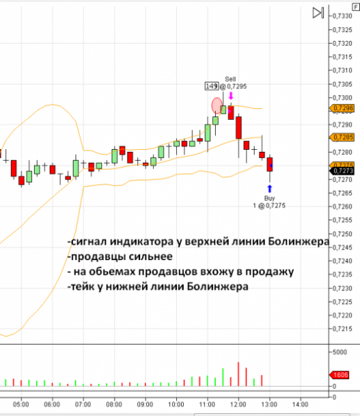 Еще сигнал по фунту, вход на третей свече на продажу, сделку не переносить на следущий день, выход по средней линии боллинжера