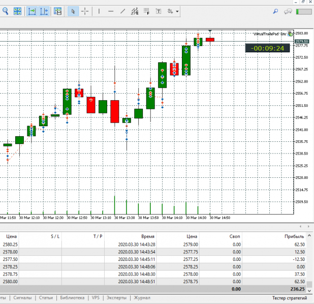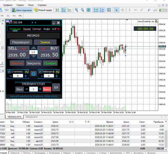 виртуал трейд пад установить не получилось, поэтому торговал с установкой стопов вручную.