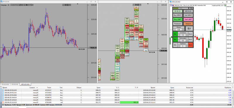 Сегодня самая первая в минус остальные в плюс! Когда сильное движение тейк не ставлю некоторые сделки закрываю вручную с большим плюсом! Мне уже нравиться такая торговля! Футпринт сегодня обновленный!