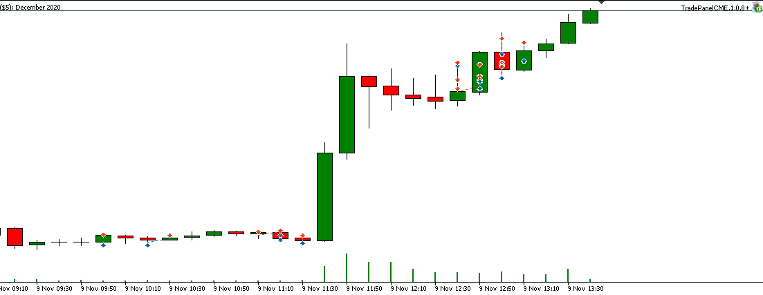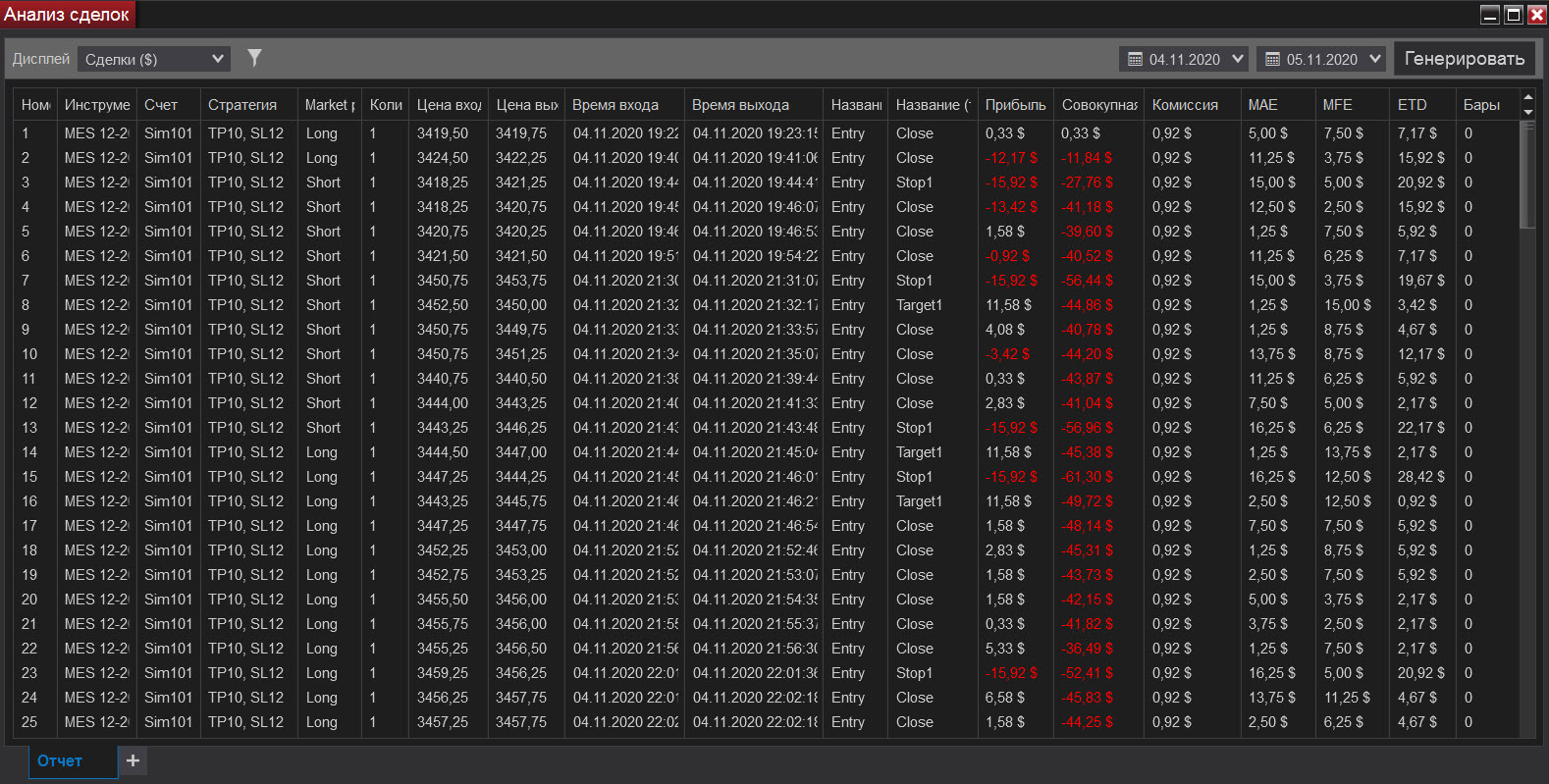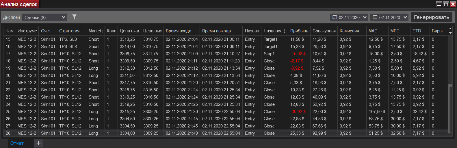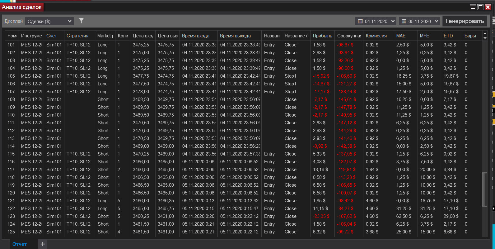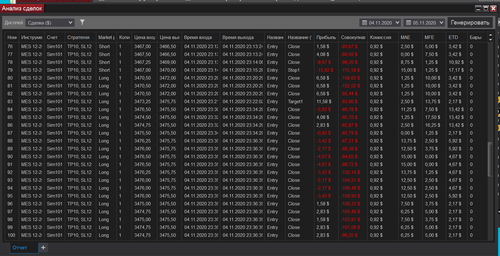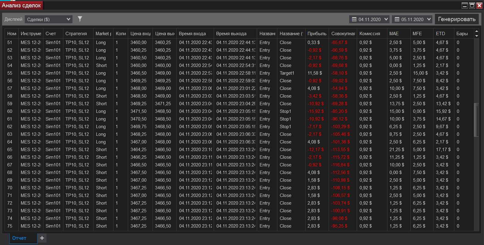 Сегодня попал на сильную волотильность и на метание цены вверх-вниз, что привело к большому минусу, но работал строго по стратегии, старался не входить в сделку когда появлялись сомнения, чувствуя, что большой стоп-лосс (12) хорошо меня придушил увеличил количество лот до 5. В итоге все же уверенно вышел в плюс.