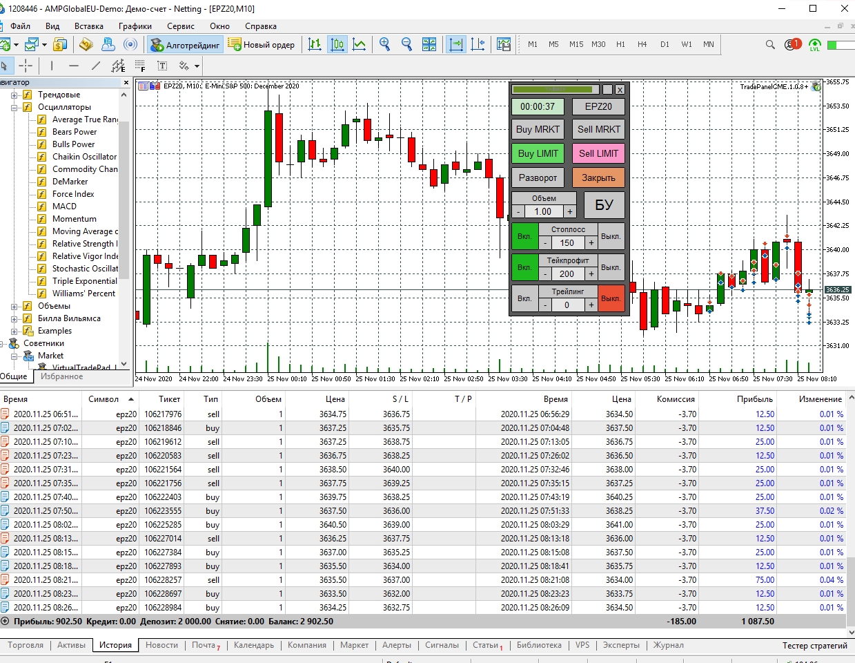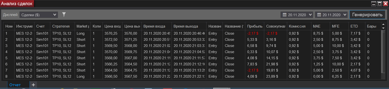 Булат, у вас с каждым разом все лучше и лучше получается. Обратите, пожалуйста, внимание, что во втором скрине сделки были открыты и закрыты по касанию. На реальном терминале это будут или не открытые сделки или минусовые. . Так как на реале для открытия сделки она должна на один тик перейти цену вами выставляемую для ее открытия. Это важный момент для вас.