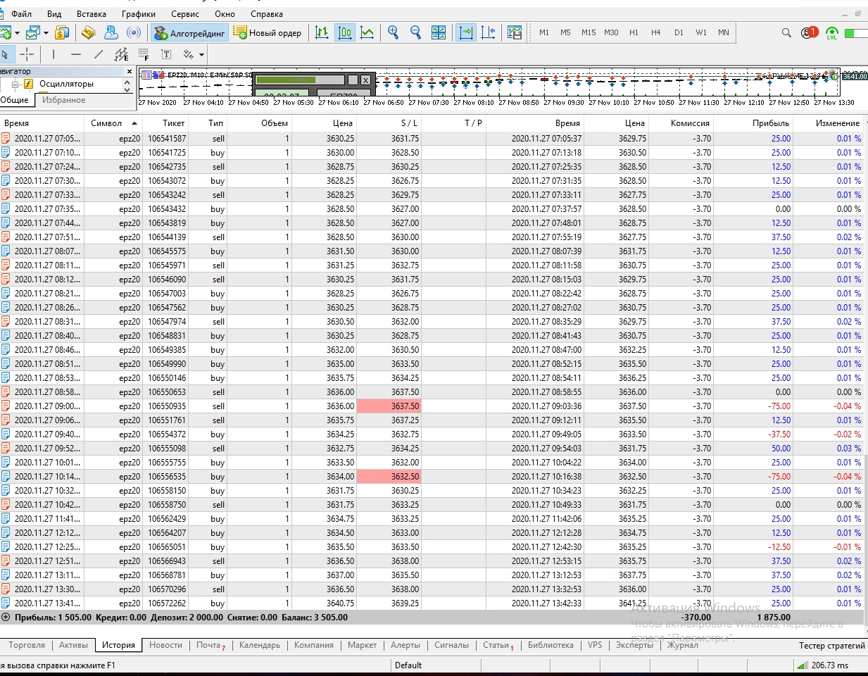 Булат, у вас с каждым разом все лучше и лучше получается. Обратите, пожалуйста, внимание, что во втором скрине сделки были открыты и закрыты по касанию. На реальном терминале это будут или не открытые сделки или минусовые. . Так как на реале для открытия сделки она должна на один тик перейти цену вами выставляемую для ее открытия. Это важный момент для вас.