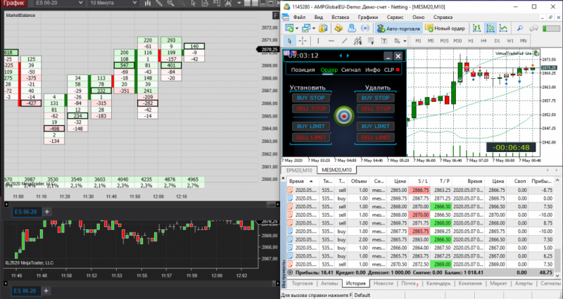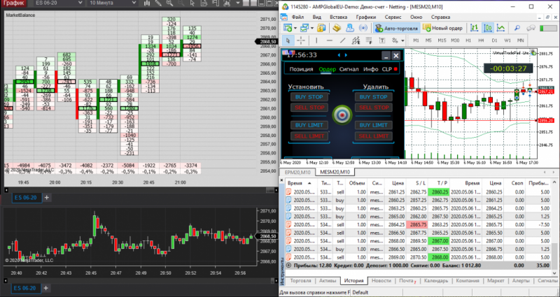 Сегодня тоже тренировался (на Демо).Но, мои эмоции берут верх надомной. Я по своей натуре, очень увлекающийся и эмоциональный. Стараюсь с этим бороться, как могу. От этого и результат на лицо. За 17 минут было сделано 42 сделки: 27 зарылись по ТП или Трейлингстоп на общую сумму+ 975,00 а 14 в минус по СЛ -725,00 одна сделка закрылась в ноль, итого в плюсе + 250,00. Самое большее, подряд было 5 СЛ. Учиться, учиться и ещё раз учиться!!! Часть моего скрина: