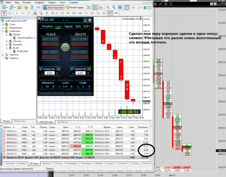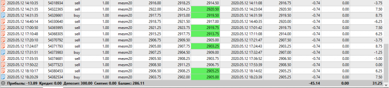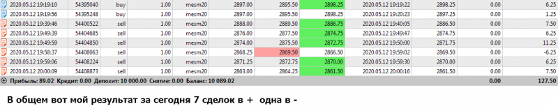 Сегодня торговал 13 сделок, на Америке, шесть в минус, но до СЛ не доводил, закрывался раньше. Получилось +$21. Если так дальше пойдет, то возможно вылезу из минуса: