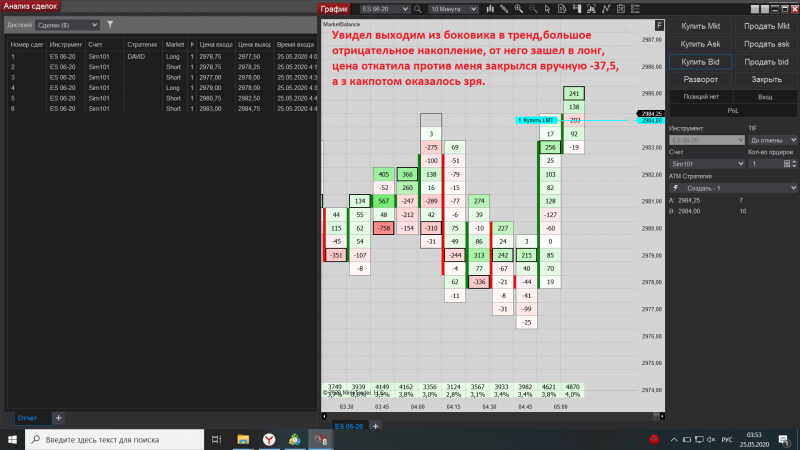 Рынок стоял все утро почти и немного сейчас выстрелил. Сделки прикрепляю. Пока +325$. Больше не буду торговать, так как сегодня праздник в США! Просьба к Евгению прокомментировать скрины 1, 3, 6!
