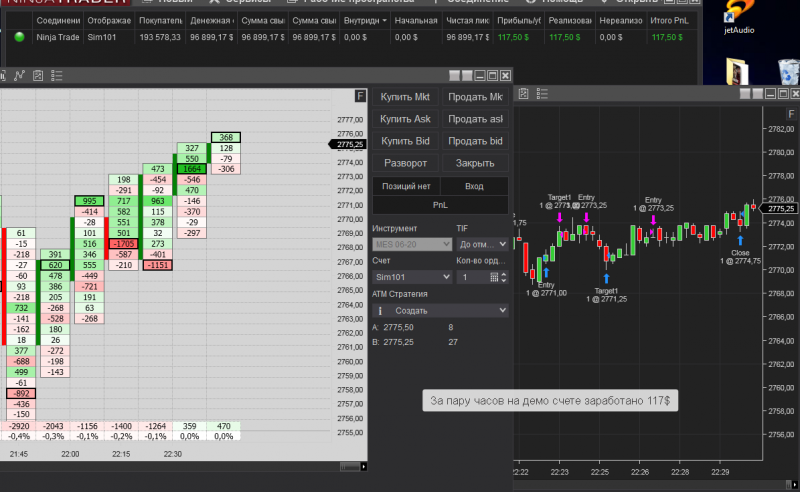 За пару часов на демо счете (микро-контракт 1 лот) заработал 117$. Конечно были и убыточные сделки, но по факту вышел в хороший плюс.