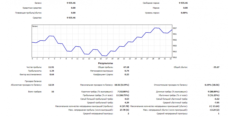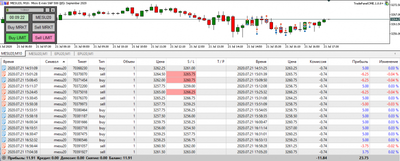 А я как обычно экспериментировал и доэкспериментировался. 19 сделок из них 5 (26.32%) убыточных и каких...Итог: -222$ на микро. Это все усреднение. причем из 5 убыточных сделок 3 мог свободно вывести в нормальный плюс 3-4 тика, но пожадничал и в результате убыток. Одна убыточная - это просто стремительный гэп, совершеннно неожиданный. последняя - это мой недосмотр тайминга, сд