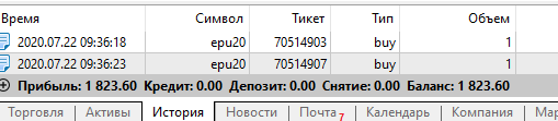 Как всегда отлично, Лариса! На скрине 27 сделок. На прокрутке около 30-35; Т.е всего около 80 сделок? и два минуса? Вот к чему надо стремиться! Если достигается такая статистика, то это означает, что человек может открыть терминал в любой момент времени и получить свою прибыль!)) Не выжидая определенного патерна или ситуации. Это - высший пилотаж, чувствовать, всегда чувствовать куда пойдет цена! Это как стрелять на вскидку и при этом, практически каждый выстрел в цель!. Не многие могут так!!! А имея такую наработку, такое чутье, такой навык можно в любой момент повысить, как говорит Давид, плотность и получить в разы больше прибыль. Мне кажется, это и есть самый правильный путь - оттачивать не плотность, а меткость!)))