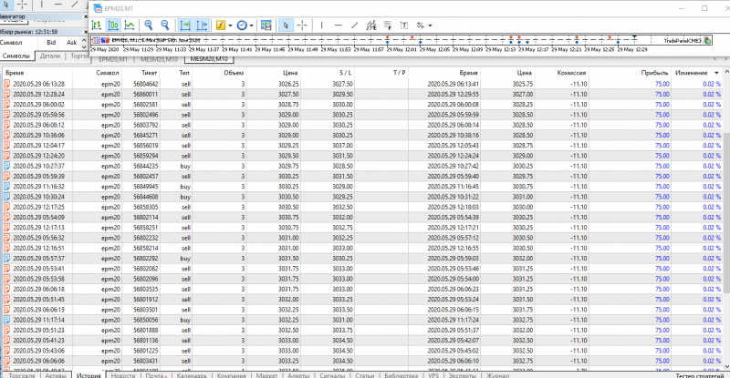 Сегодня попал под болтание цены и по крупному опустился. Из 20 сделок 12 были в (+), остальные в минус. Я не стал увеличивать стоп-лосс, поэтому много минусов на таком рынке.