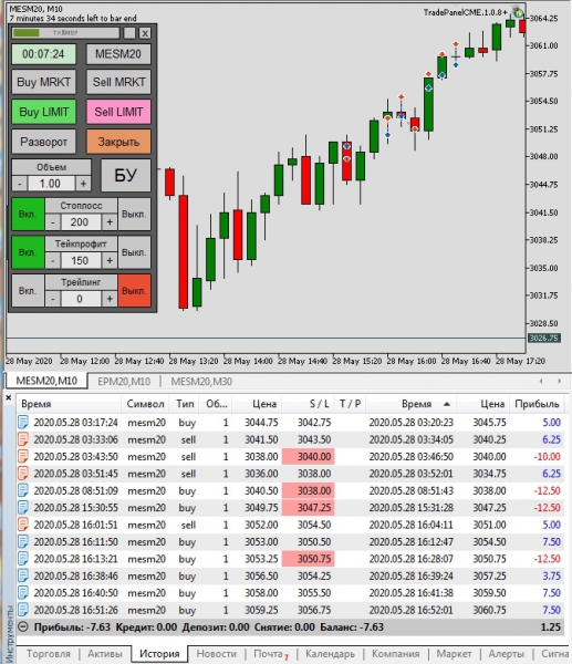 Давид! Со стопом в 50 Вы далеко не уедете! Вас будет постоянно выбивать! Надо разумный стоп ставить! В торговле самое главное не стопы .а правильность входа в сделки У меня сегодня были на Америке и стопы ну и что? Зато общий профит за сегодня на дистанции внизу скрин!