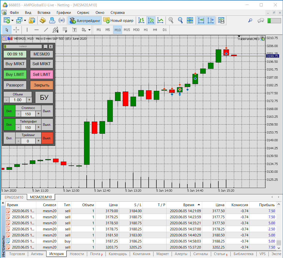 Торговля за сегодня (реал): 3 раза выходил руками в б/у, а потом цена доходила до тейка... Итого: 5 сделок, 2 по тейку, 3 в б/у.
